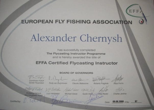 In 2008 I successfully passed the exams of the European Fly Fishing Association (EFFA). After that I started teaching as an instructor — fly casting, fly fishing techniques, and fly tying.